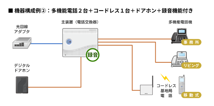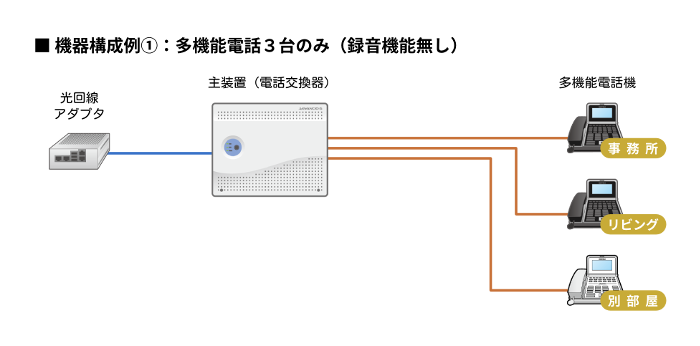 SOHO,個人事業主様にもご検討いただけるよう、小規模構成(電話機3台)での、構成例・参考価格となります。電話機の台数を増やすこともできますので、まずはお問い合わせを。