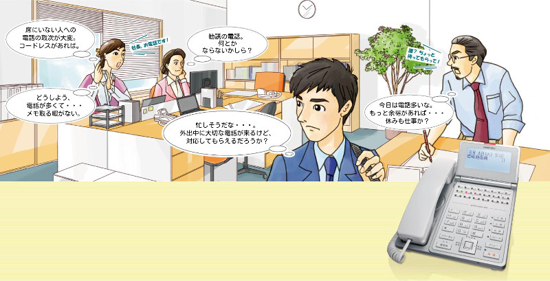 ご存知の方が多いと思いますが、業務用電話機は「ビジネスフォン」と呼ばれております。「ビジネスフォン」も年々進化しており、既にご存知の機能や最新の機能含め、活用次第で便利に、快適な仕事の環境を作ることができます。